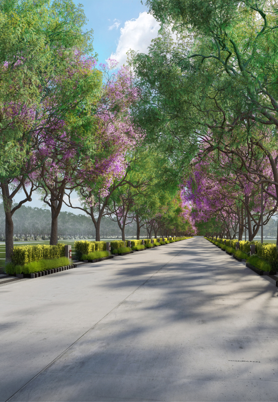Avenue plantation for internal and masterplan roads.